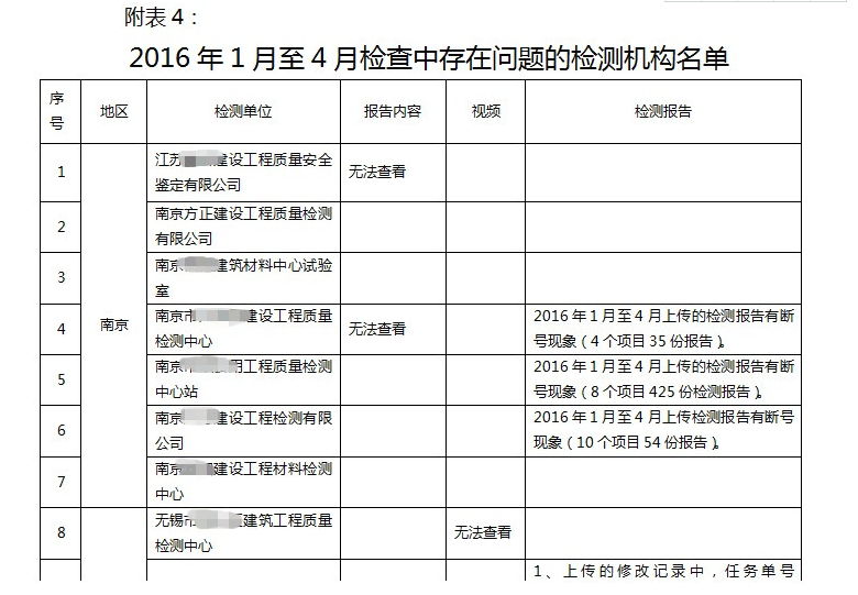 江蘇省建設工程質量檢測遠程監(jiān)控月報(2016年第1期)情況通告