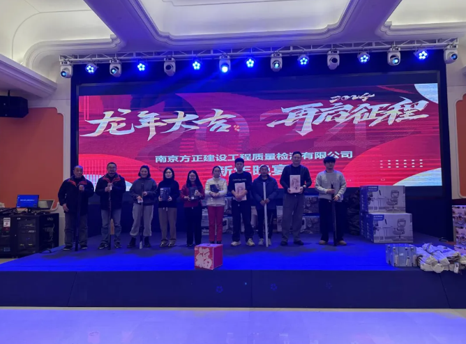 在2024春節(jié)到來前夕,南京方正建設(shè)工程質(zhì)量檢測有限公司于2024年2月6日下午在公司二樓會議室召開年終總結(jié)會議,會上各部門進行年終匯報,并對優(yōu)秀員工、積極份子進行表彰。會后在南京白金漢爵大酒店召開了“迎新春,再啟程”的年度慶祝晚會——匯總過往一年的收獲,期待明年的再啟征程。